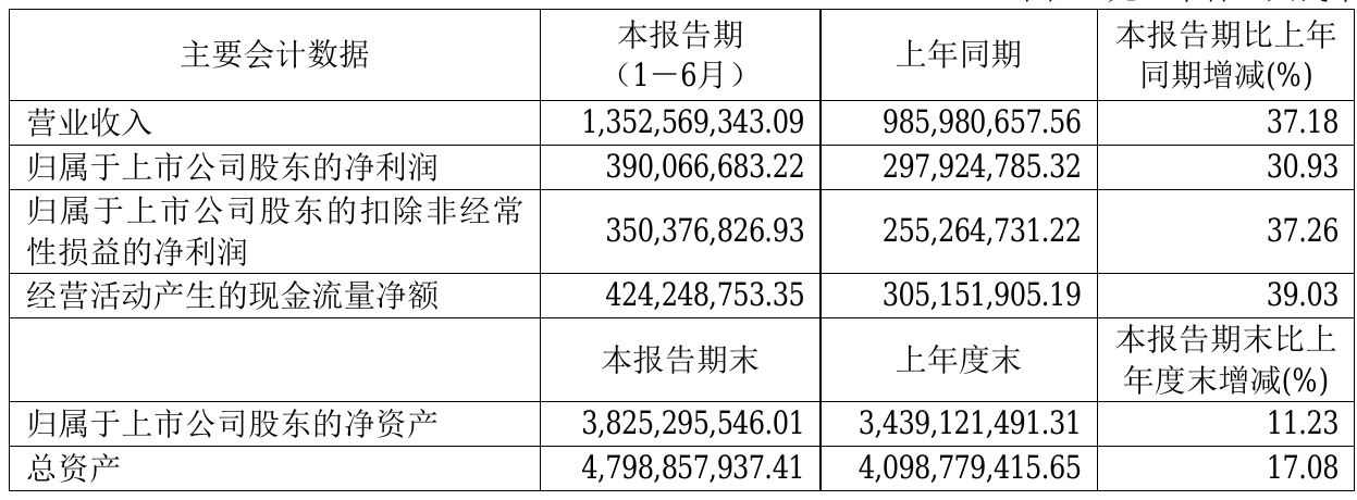 8月25日,地素时尚(603587)近日发布2021年半年度报告,报告期内营业收入1,352,569,343.09元,同比增加37.18%;净利390,066,683.22元,同比净利增加30.93%。