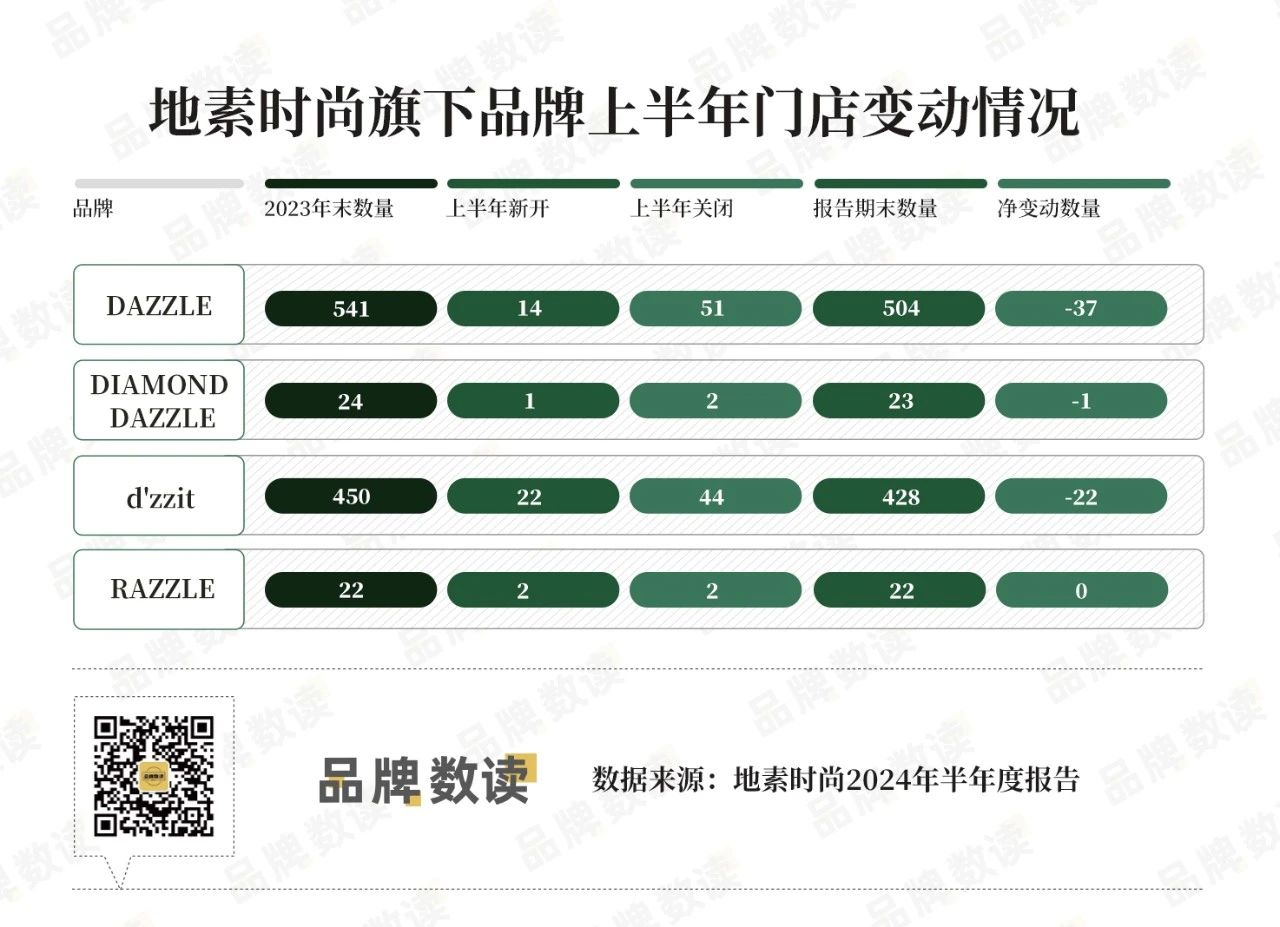 d’zzit也在上半年关闭了44家门店,净减少22家;DAZZLE仅新开1家门店,关闭2家,门店规模也在收缩。