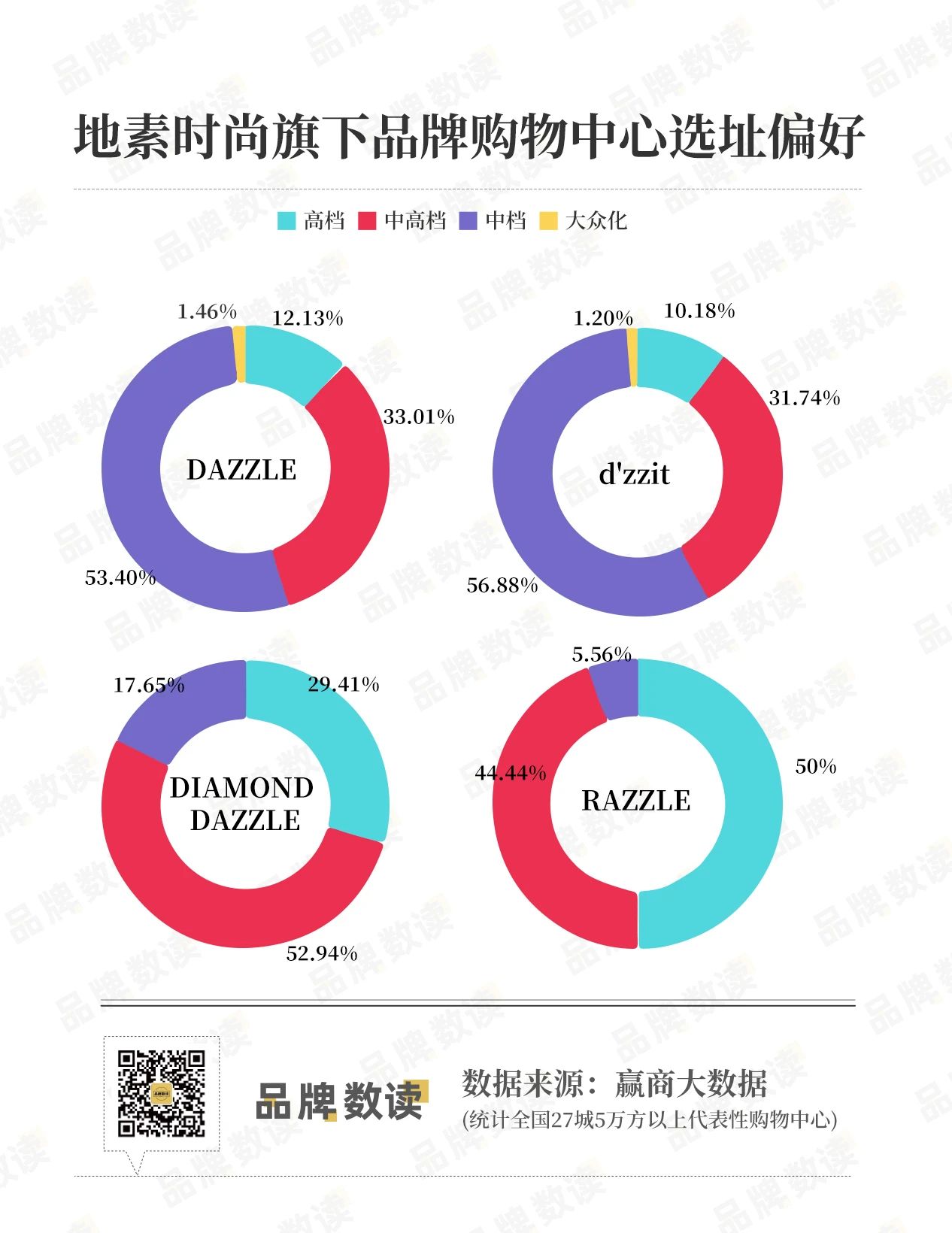 主品牌DAZZLE定位中高端女装,DIAMOND DAZZLE定位更高端的艺术女装,d’zzit则是以年轻潮酷女装为主,RAZZLE是中高端男装品牌。