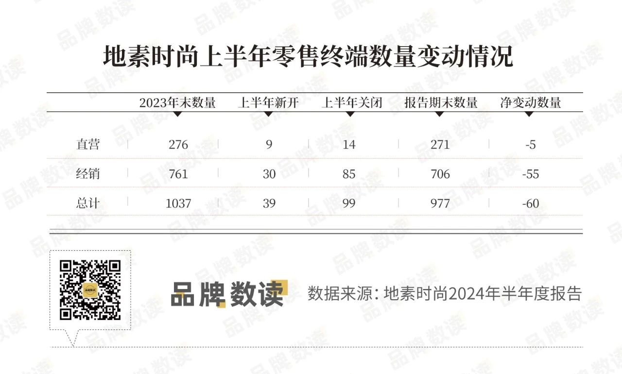 截至上半年末,地素时尚在全国共有977家门店,这一数据在去年末还是1037家,半年间净减少60家。