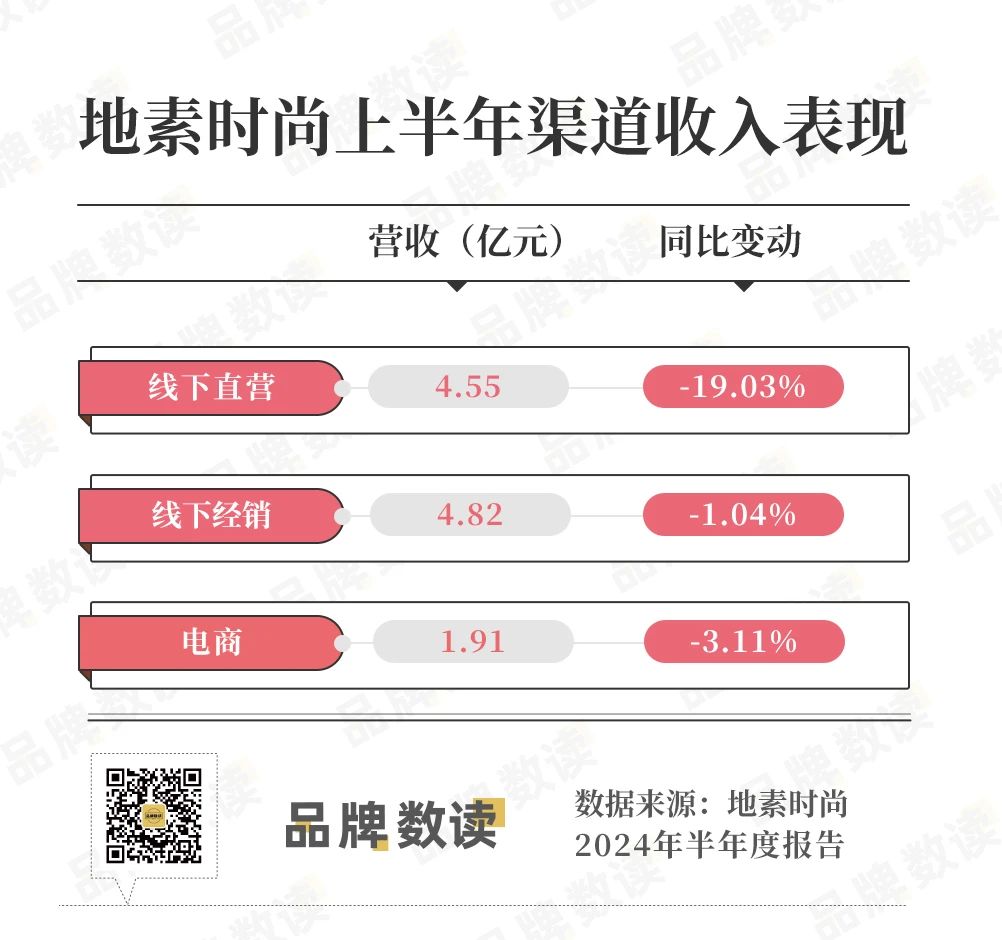 分渠道来看,地素时尚上半年在直营、经销、电商三个主要渠道的收入均出现下滑。