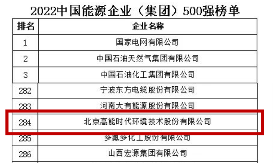 近日,由中国能源报社与中国能源经济研究院共同研究评价的“2022中国能源企业(集团)500强”榜单重磅发布。高能环境凭借稳健的经营业绩以及深度践行节能环保理念连续两届荣登“中国能源企业(集团)500强”榜单。