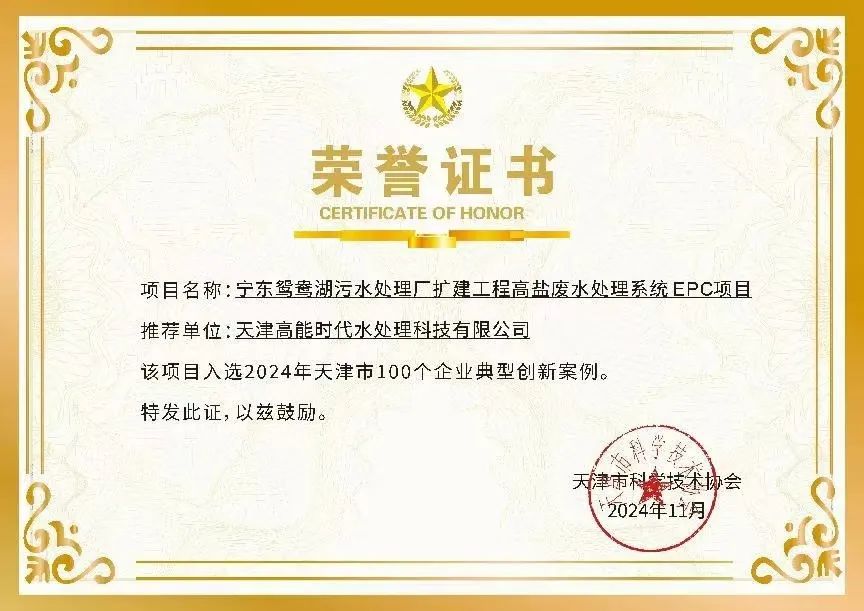 近日,天津市科协《2024年天津市企业典型创新案例入选名单》揭晓,高能环境宁东鸳鸯湖污水处理厂扩建工程高盐废水处理系统EPC项目(以下简称宁东鸳鸯湖项目)成功入选。