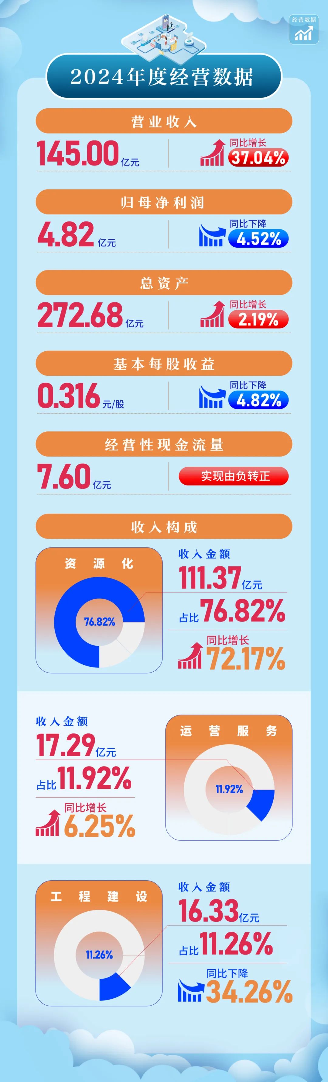 高能环境2024年度报告:营业收入145.00亿元,同比增长37.04%