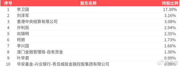 公司股东户数为4.08万户,前十大股东持股数量为5.39亿股,占总股本比例为35.38%,前十大股东持股情况如下: