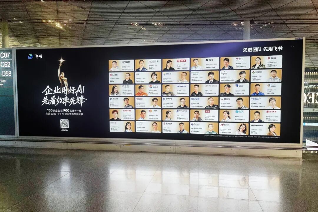 在2025飞书未来无限大会期间,高能环境AI智能巡检系统不仅设立专属展位进行成果展示,更成功斩获“飞书2025AI+先进生产力年度优秀实践”称号。鉴于该案例的行业示范价值,高能环境获赠飞书机场广告专属推广资源(北京、上海、深圳、广州、成都、武汉、郑州、南京全国八大核心枢纽的机场广告共41处),向社会公众传递环保行业智能化转型的“高能实践经验”。