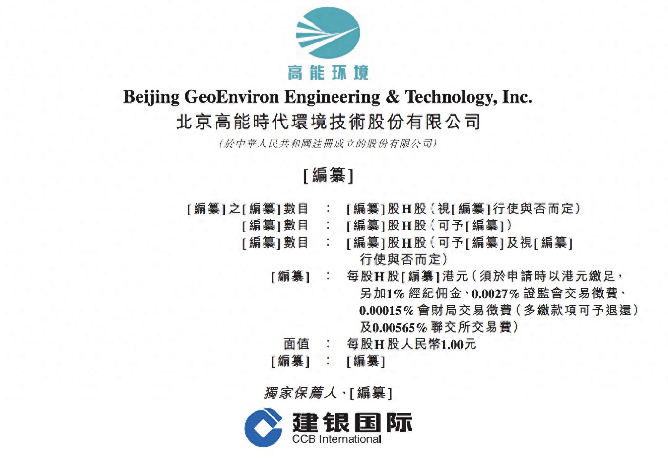 3月27日,北京高能时代环境技术股份有限公司(以下简称:高能环境)向港交所主板递交上市申请,建银国际为独家保荐人。