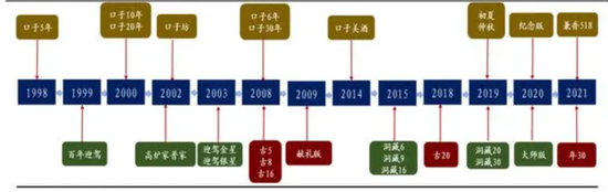 2015年以来白酒升级以价格为矛,高端价盘抬升打开次高端天花板,古井、迎驾在新品推进节奏上明显快于口子窖。其中古井2018年推出定位500-600元价格带的古20,并聚焦资源高举高打,2021年顺势推出千元价格带新品年三十进一步拉升品牌势能;迎驾2019年推出洞20/30,2020 年底迎驾贡酒(大师版)上市,进一步拉高洞藏系列品牌高度。