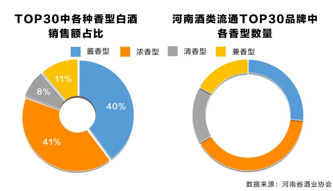 无独有偶,在2月9日河南省酒业协会发布的《2022年河南酒类流通市场报告》显示,在销售额排名TOP30的品牌中,兼香型5家,更有兼香品牌位居前列。兼香型白酒排在浓香、酱香之后,进入前三。