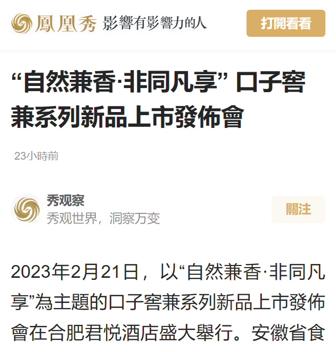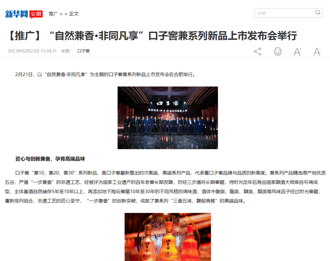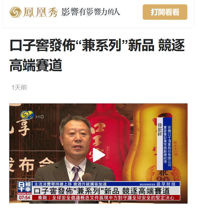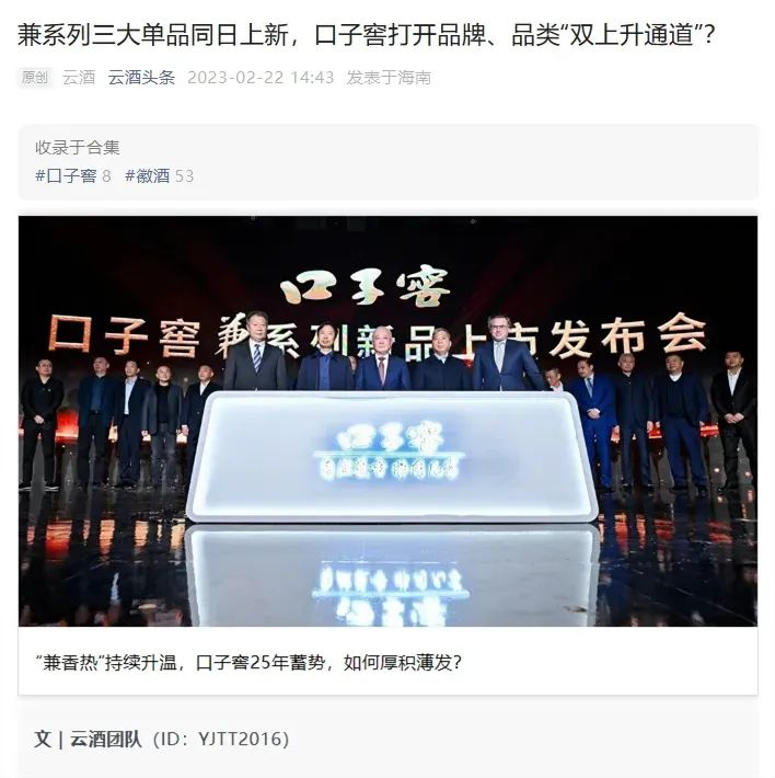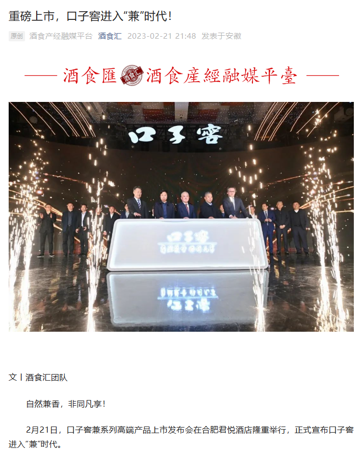 因篇幅限制,其余多家媒体就不逐一列举了。在当前中国白酒进入大兼香时代的背景下,口子窖将继续秉承匠心、提升品质,持续为消费者带来更高品质的品饮体验和文化体验。