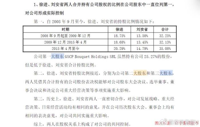 招股书显示,彼时,徐进、刘安省分别为公司第二、第三大股东,分别持有公司20.29%和14.79%的股份。
