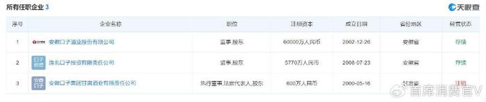 从 资料查看,刘安省的资本布局很简单,全部与口子窖有关。目前,刘安省任职的企业共计3家,分别为安微口子集团甘肃酒业有限责任公司、淮北口子投资有限责任公司、安徽口子酒业股份有限公司。