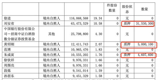 在口子窖上市之前,徐进、刘安省二人一直是实控人。徐进持有公司109568568股,占发行前总股本20.29%;刘安省持有79873450股,占发行前总股本14.79%。