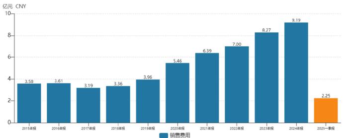 增收不增利背后则是销售费用的迅速增长,2024年,公司销售费用达到9.19亿元,同比增长11.1%,远超公司同期0.89%的营收增幅。业绩说明会上,公司副总经理、财务总监范博表示,销售费用的增加主要是当年增加了针对消费者的促销投放。