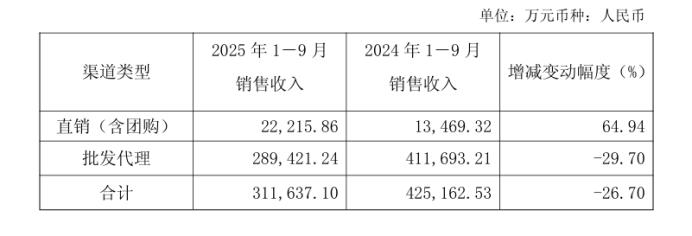 同期,公司虽然净增 102 家经销商,总数达到 1121 家,但批发代理渠道营收仍下滑,显示新增经销商未能转化为实际销量。