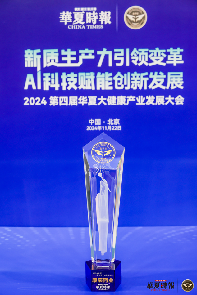 近日,由华夏时报社主办的2024第四届华夏大健康产业发展大会在北京举行。康辰药业凭借在中医药领域的卓越表现和创新成就,荣获“2024年度中药创新十大贡献企业”金手杖奖。这一荣誉不仅是对康辰药业在中医药领域创新实践的广泛认可,也是对其在传承与创新中医药方面所取得成就的肯定。