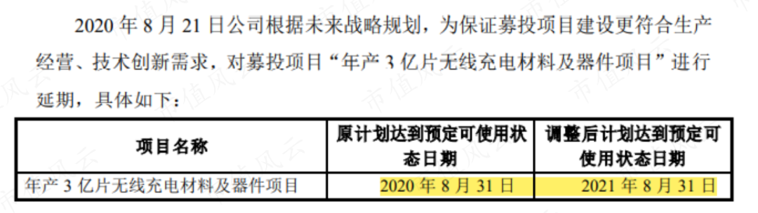 不过,东尼电子的年产3亿片无线充电材料及器件项目,进展并不顺利。