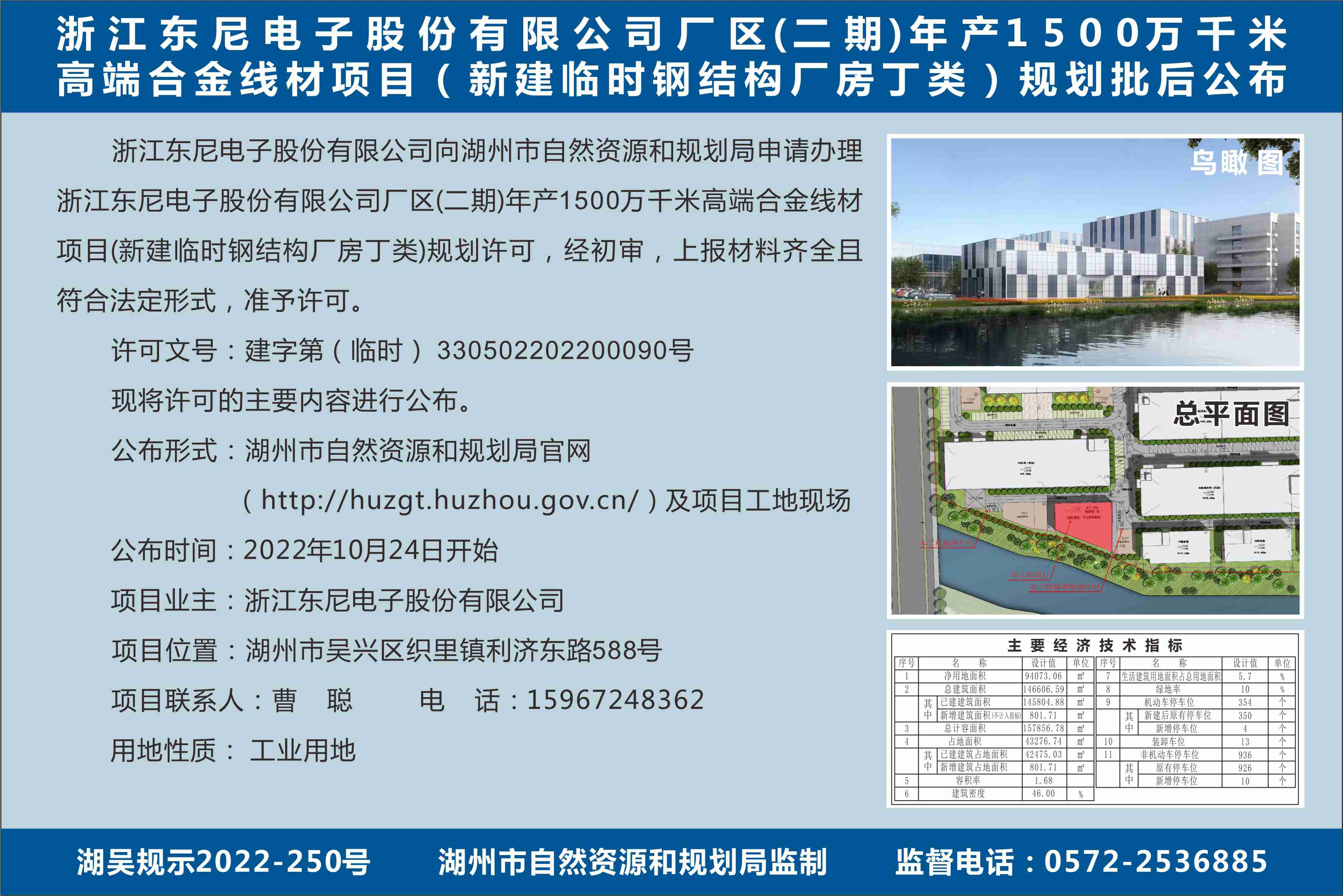 浙江东尼电子股份有限公司厂区(二期)年产1500万千米高端合金线材项目(新建临时钢结构厂房丁类)规划