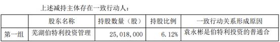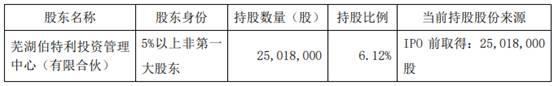 截至公告日,伯特利投资持有伯特利股份25,018,000股,占公司总股本的6.12%,均为IPO前取得。