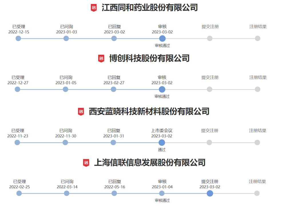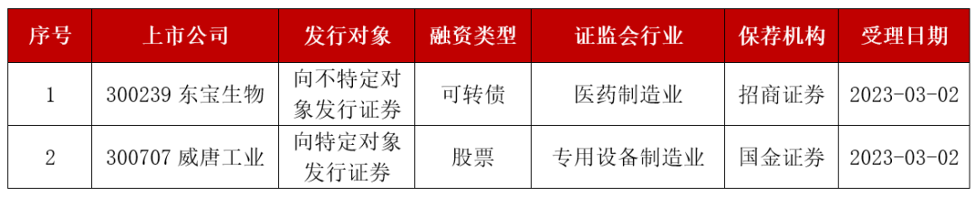 昨日至今,创业板再融资新增东宝生物等2家获受理,新增共和药业等2家审核通过企业,新增蓝晓科技1家上市委会议通过企业,新增信息发展1家提交注册企业。