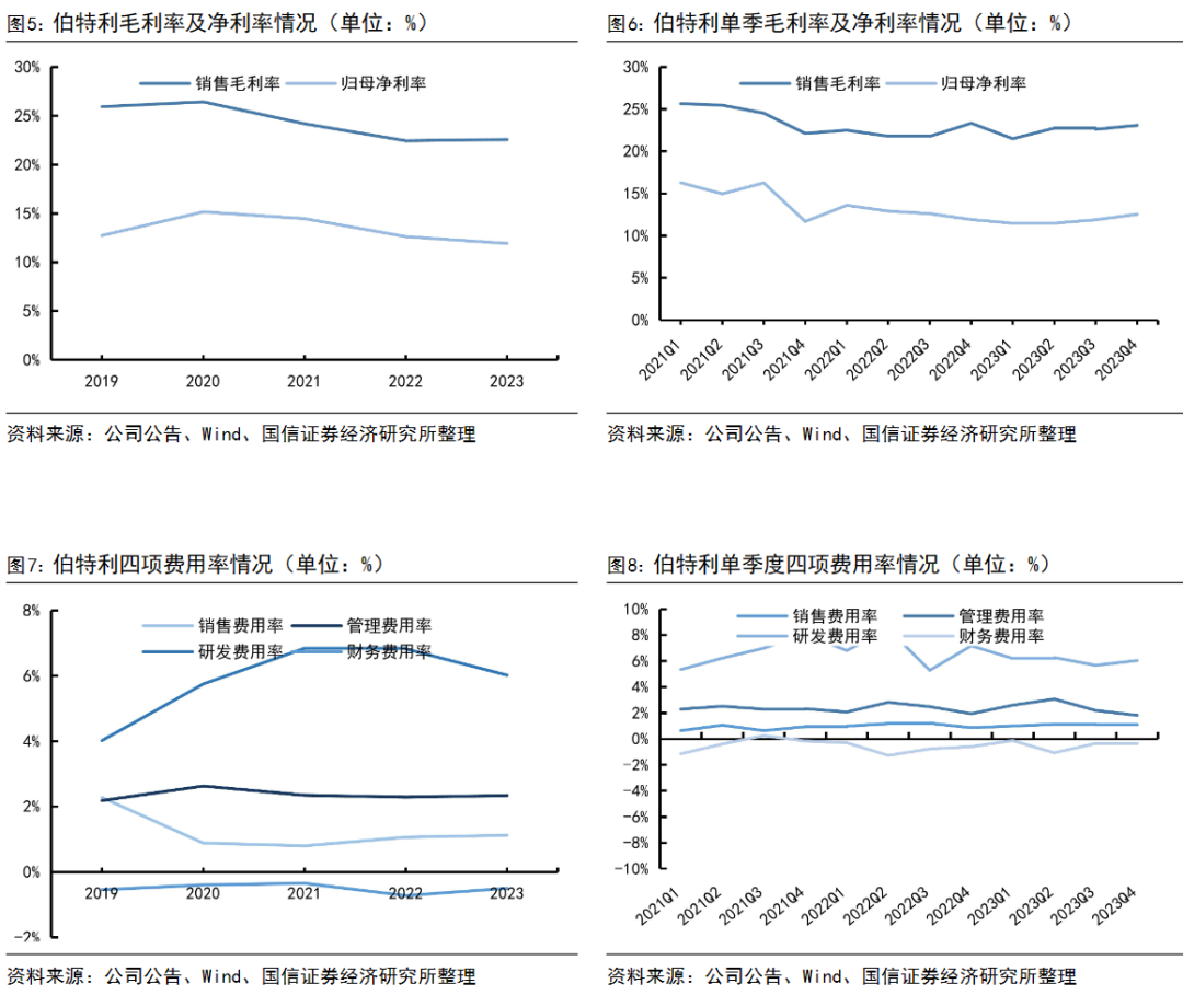 利润端,23年公司毛利率22.57%,同比+0.13pct;实现归母净利率11.92%,同比-0.7pct;单季度看,23Q4毛利率23.09%,同比-0.25pct,环比+0.48pct;实现归母净利率12.54%,同比+0.63pct,环比+0.66%。