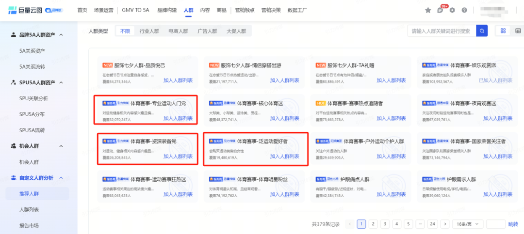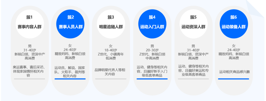 ·赛场内外人群根据内容、人物、商品的关键词具体被分成六大标签人群;