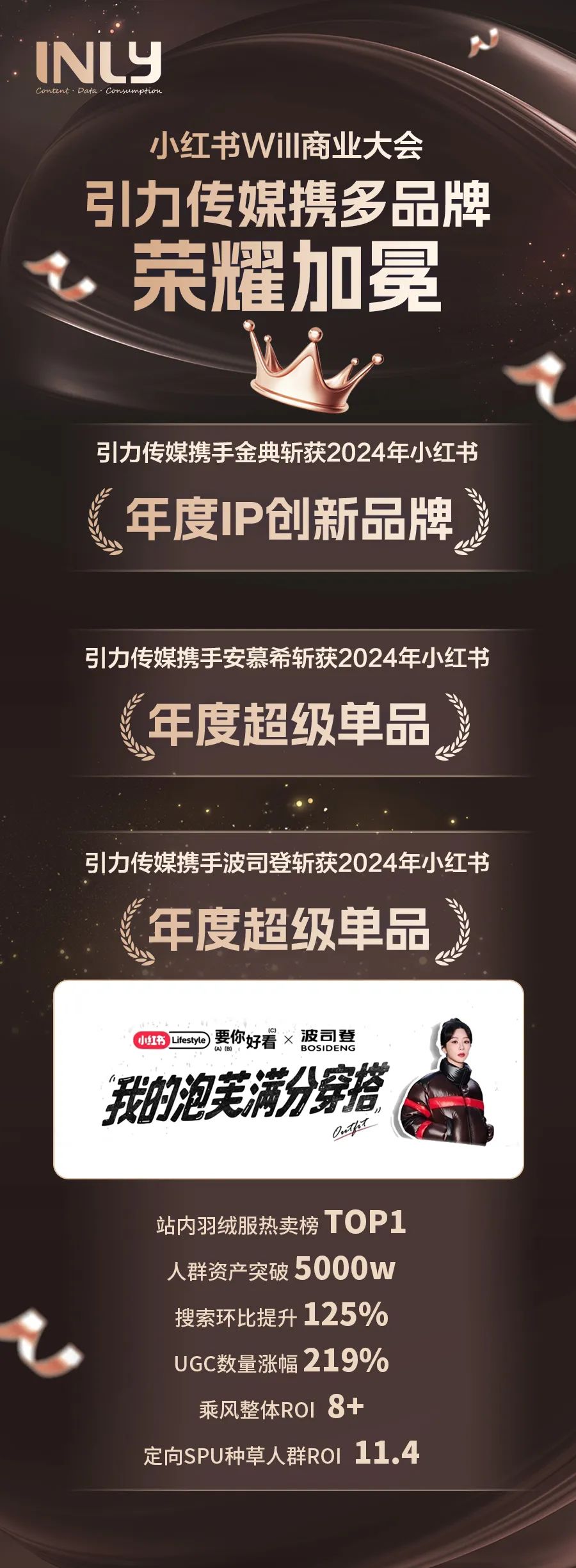 12月18日,备受瞩目的小红书Will商业大会在上海圆满举办,引力传媒凭借对小红书平台的深度洞察与精准策略,携手金典、安慕希、波司登等品牌斩获多项殊荣。