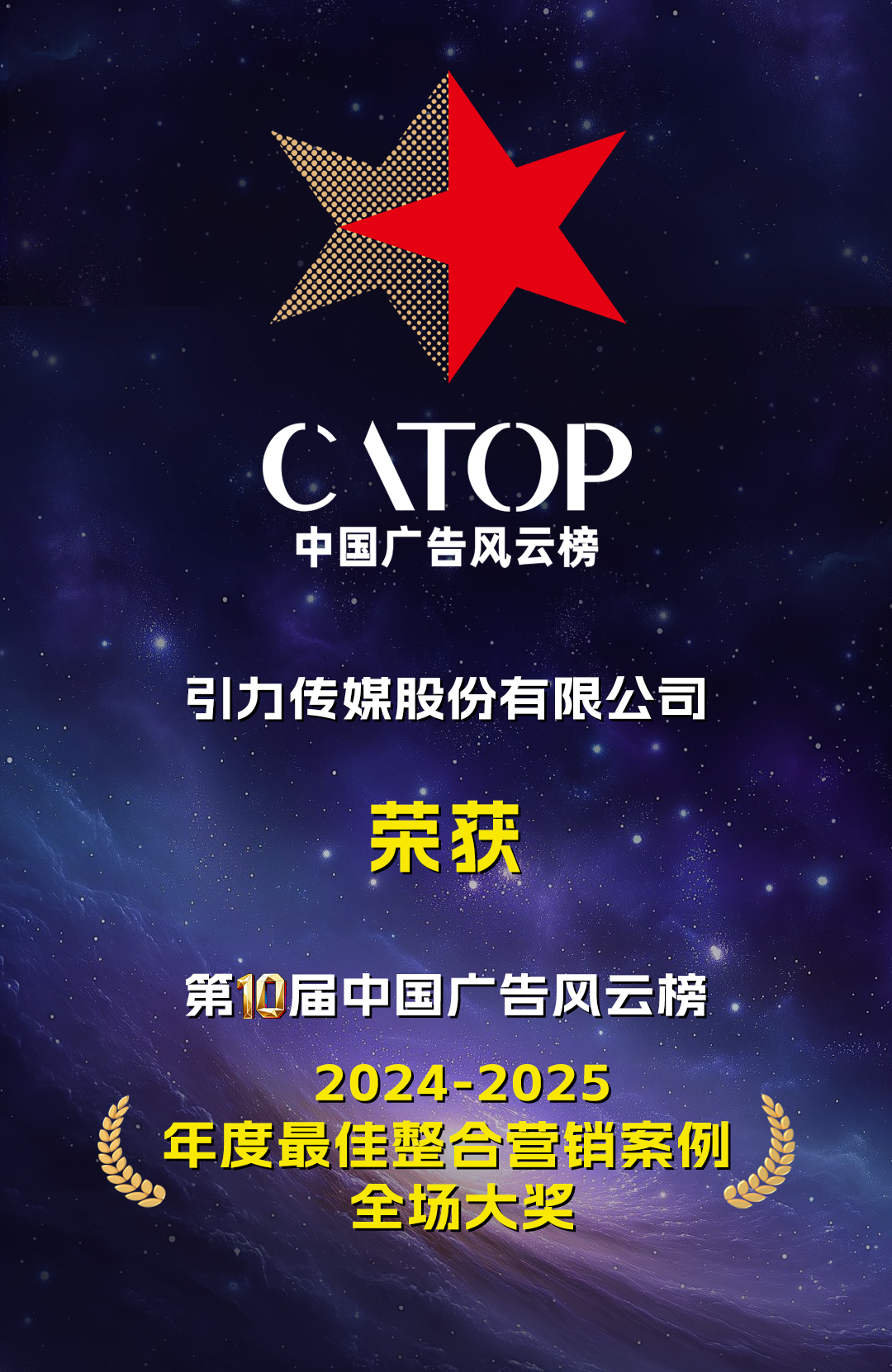 “全场大奖”作为此次评选的最高荣誉,具备充分的代表性与行业标杆价值。这一荣誉是对 引力传媒 专业实力的权威认可,也充分彰显了自身在广告营销领域的领军地位。