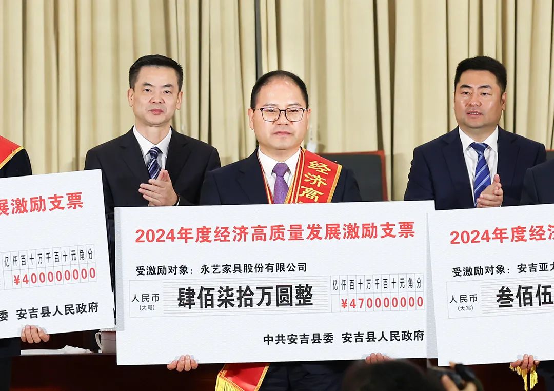 2月6日,安吉县隆重召开主题为“持续深化‘在湖州看见美丽中国’实干争先主题实践全力交出‘两山’理念提出20周年高分答卷”的新春第一会,永艺股份荣获安吉县年度十佳明星企业、开放发展企业奖、质量专利创新奖,并获得年度经济高质量发展激励。