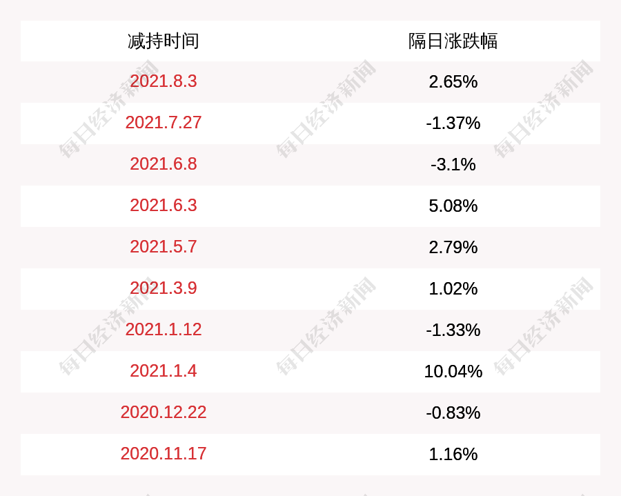 3.珀莱雅上次发布减持公告是2021年08月03日,第二个交易日上涨2.65%,珀莱雅近一年共发布11次减持类公告。更多关键信息,请搜索“道达号”。