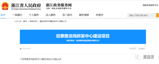 据悉,“龙坞研发中心建设项目”已取得杭州市生态环境局西湖分局出具的《浙江省“区域环评+环境标准”改革试点建设项目环境影响评价文件承诺备案受理书》(杭西环改备〔2021〕2 号),并且浙江省政府官网5月5日对其建设项目环境影响评价信息进行了公示。