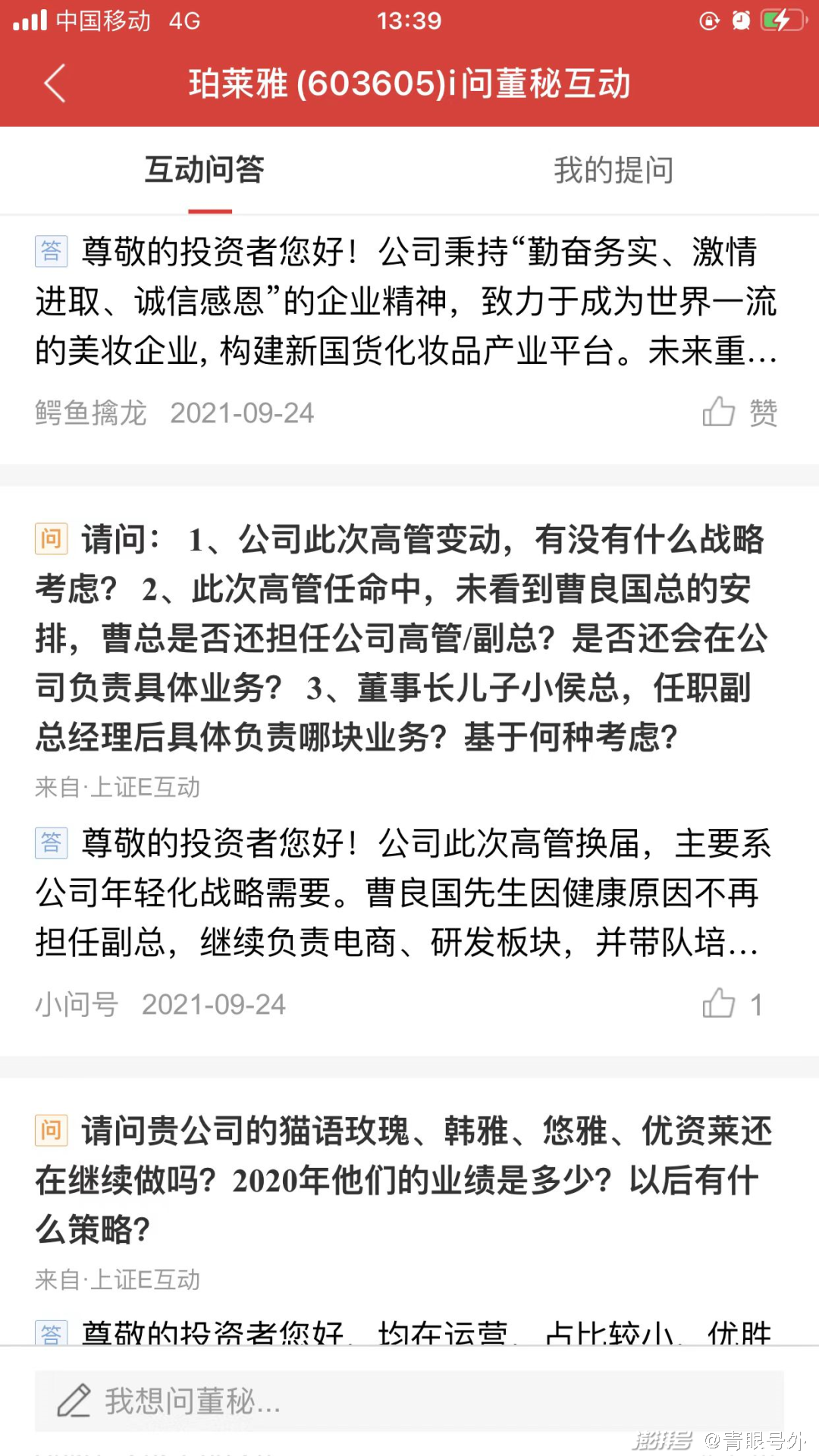据珀莱雅方面向青眼号外提供的资料显示,去年9月24日,就曾有投资者向珀莱雅(603605.SH)提问,“此次高管任命中,未看到曹良国总的安排,曹总是否还担任公司高管/副总?是否还会在公司负责具体业务?”彼时,珀莱雅方面回复,“曹良国先生因健康原因不再担任副总,继续负责电商、研发板块,并带队培养公司年轻管理层。”