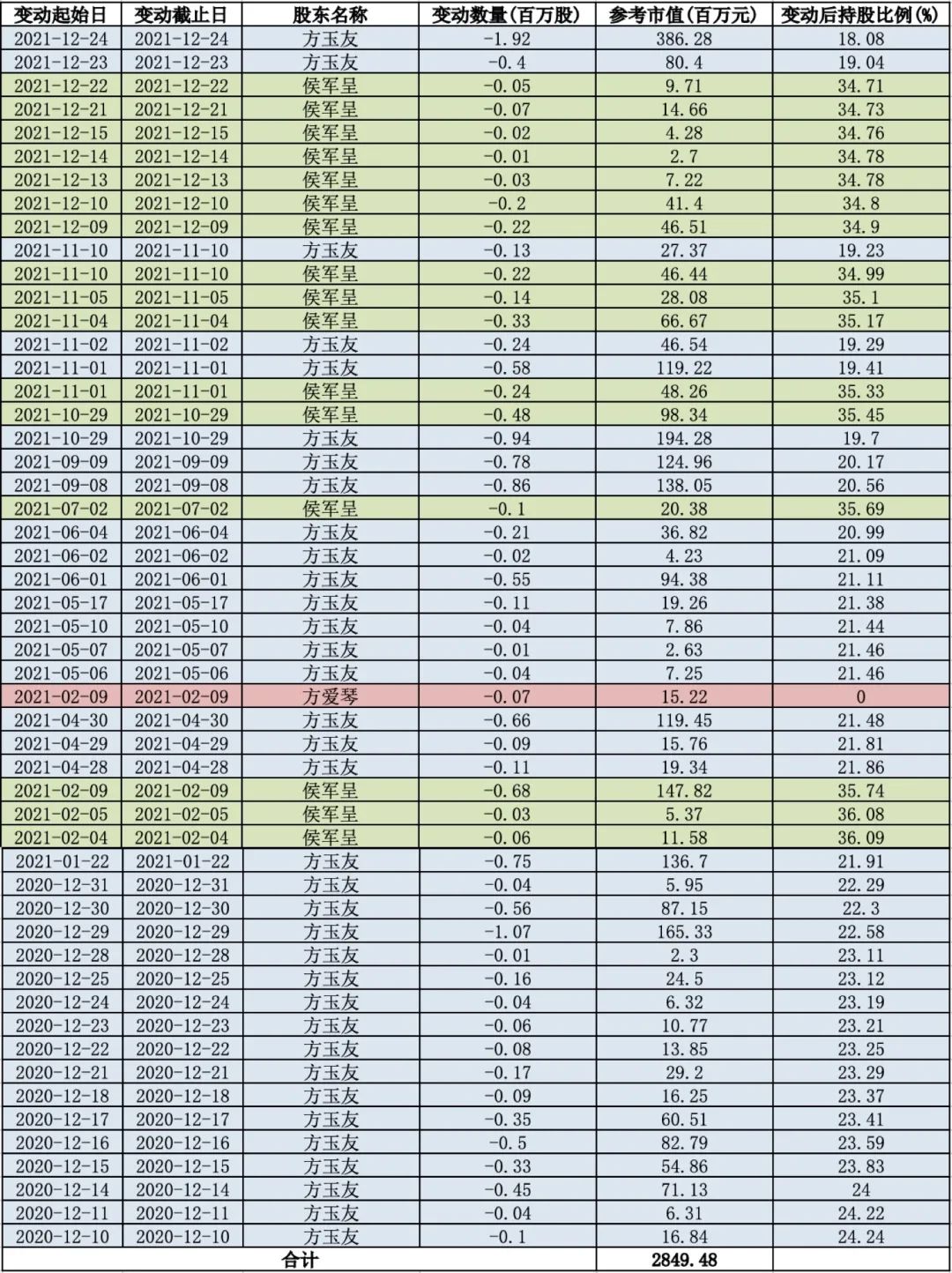 侯军呈及其亲属近三年减持情况(数据来源:Wind)