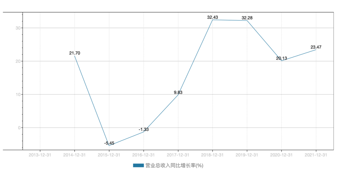 凤凰网《风暴眼》梳理Wind发现,自2017年上市后,珀莱雅的营收虽然逐年增长,但营收增长率波动较大,2018-2021年营收增长率分别为32.43%、32.28%、20.13%及23.47%,反映出公司营收增长中枢下降。