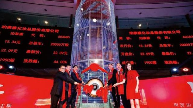 当时的资本市场很吃这一套。2017年珀莱雅上市后,股价一路飙升,从15.34元的发行价最高曾涨到224元,累计翻了13倍。