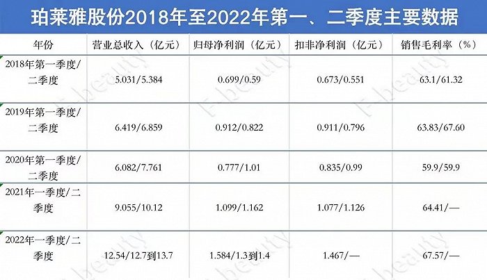 珀莱雅刚刚发布的第二季度主要经营数据显示,销售势头持续向好。经初步核算,2022年第二季度,公司营业总收入在12.7亿元至13.7亿元之间,同比增长25%至35%;实现归属于上市公司股东的净利润约为1.3亿元到1.4亿元之间,同比增长15%至22%。