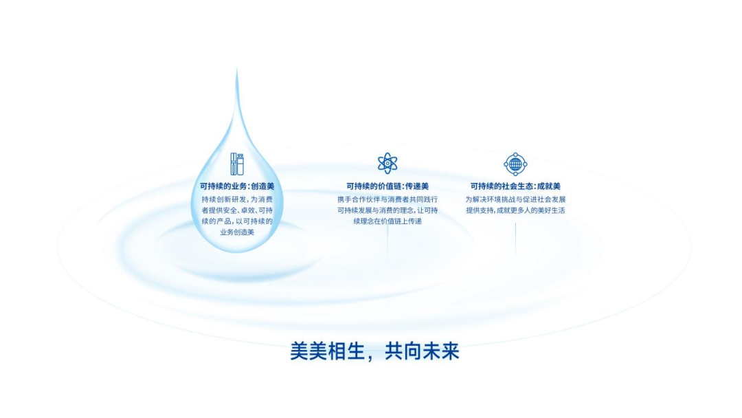 “美美相生,共向未来”,2022年,在充分评估自身经营发展的环境、社会影响和风险、机遇的基础上,珀莱雅发布了第一个可持续发展战略规划(2022-2025),以实际举措推动人与自然、人与社会和谐共生的新未来。