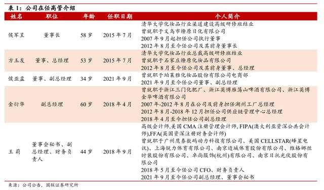 公司核心管理团队具备丰富的行业经验,深谙本土化妆品市场和营销之道,对消费者需求变化具有较强的敏锐度,助力公司快速捕捉渠道变迁红利和进行产品前瞻性布局。