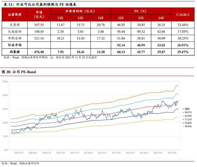 1)相对估值法:考虑到公司作为国货化妆品龙头已成功践行大单品策略、电商渠道运营能力强、高效组织架构持续赋能公司业务发展,同时新品牌彩棠已逐步实现放量,成长逻辑清晰,我们认为公司应当享有一定的估值溢价,综合可比公司估值及历史估值情况,给予2023 年目标 PE为51倍,对应总市值533.77亿元,每股价格188.26元。