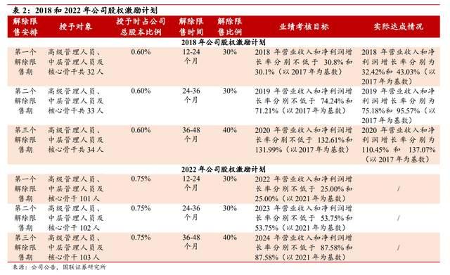 2018年7月,公司发布限制性股票激励计划,激励对象包括核心高管张叶峰(4.86万股)和金衍华(9.83万股),以及30位公司中层管理人员及核心骨干(105.42万股)。截至2022年1月,三年解除限售条件均已达成,解除限售股份已流通上市。