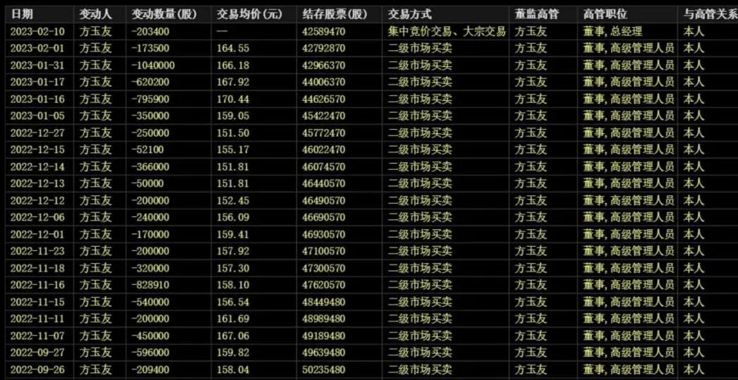 2022年9月19日至2023年2月10日,方玉友连续25次减持珀莱雅公司股票。其中,2023开年以来就减持了6次。