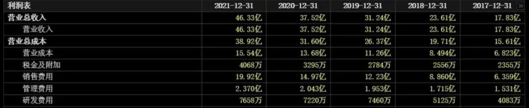 不过细品,大笔营销功不可没。2019-2021年,销售费分别约为12亿元、15亿元、20亿元,分别占当年营收39%、40%、43%。持续增长。2022年前三季,销售费约17亿元,占当年营收约43%。