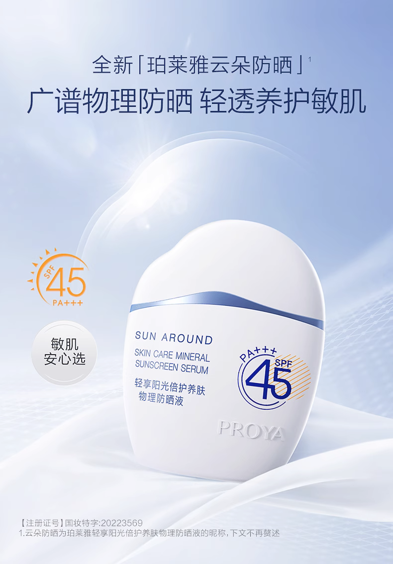 相比对光稳定性较差,易分解,易引起刺激,导致皮肤过敏的化学防晒剂(小分子量的有机防晒剂还有通过透皮进入人血液循环系统的风险),物理防晒天然更加安全。而且珀莱雅云朵防晒采用的稳定型二氧化钛还不易造成皮肤刺激,粒径较大的非纳米级氧化锌也不易渗透到皮肤之中。并且珀莱雅云朵防晒不添加酒精、香精、羟苯甲酯类防腐剂,且已经通过了多次皮肤刺激性实验、皮肤变态反应试验、皮肤光毒性试验,包含敏感肌在内的大部分肤质均可安全使用。