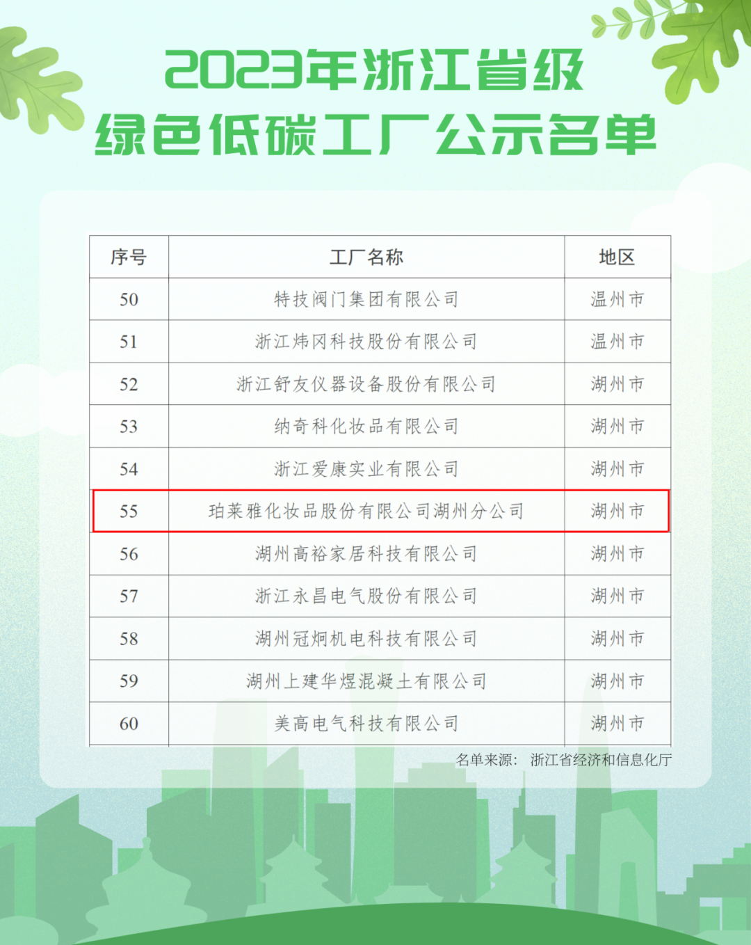 基于珀莱雅5G智能工厂的建成,珀莱雅实现了绿色化制造,成功入选了“2023年度绿色供应链管理企业“名单,而珀莱雅湖州分公司则上榜“2023年浙江省级绿色低碳工厂”名单。