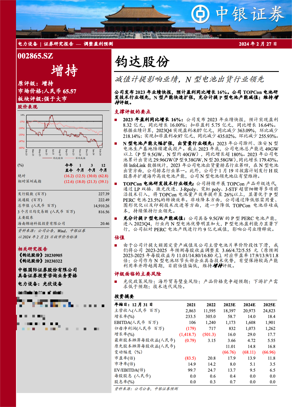 答:2024年,随着P型落后产能逐步出清,电池环节供需相对平衡,对于高效电池甚至可能存在阶段性产能短缺,电池环节盈利持续提升。