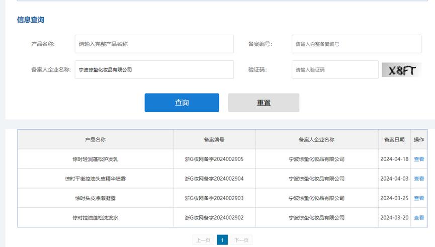随之,青眼号外以“宁波惊蛰化妆品有限公司”为关键词在国家药监局国产普通化妆品备案平台检索发现,目前,惊蛰公司作为备案人自2024年3月以来共备案了4款产品,分别为惊时控油蓬松洗发水、惊时头皮净澈凝露、惊时平衡控油头皮精华喷雾和惊时轻润蓬松护发乳,产品生产企业之一即为珀莱雅公司。