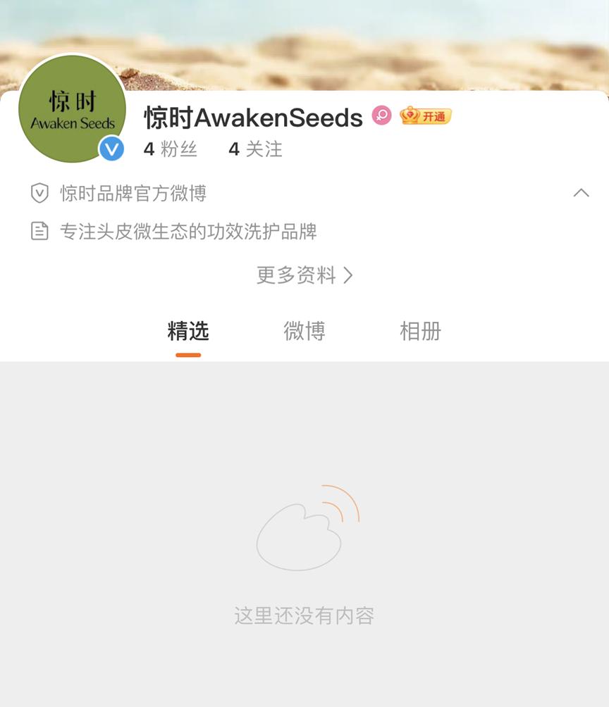 青眼号外发现,目前惊时品牌已经在微博、小红书平台进行了账号认证,账号简介显示,其品牌slogan为“专注头皮微生态的功效洗护品牌”。