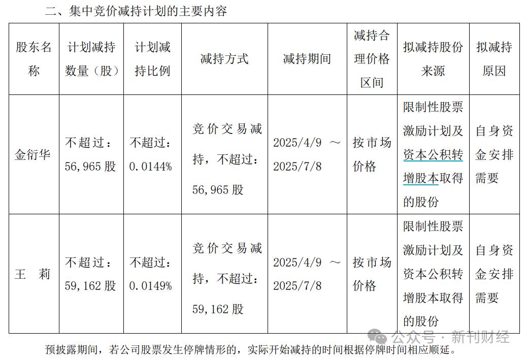 此前,两位副总均对减持方式和减持数量等内容作出承诺:在担任公司董事/高级管理人员期间,每年转让的股份不超过自身直接或间接持有公司股份总数的25%;离任后半年内,不转让直接或间接持有的公司股份。因此,此次减持计划的股份数量已到要求的上限。