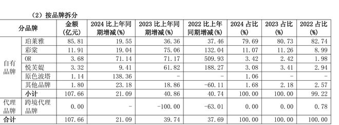此外,洗护品牌Off&Relax(OR)2024年的营收为3.68亿元,同比增长71.14%;护肤品牌悦芙媞的营收同比增长9.41%至3.32亿元。