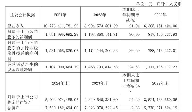 4月25日,珀莱雅发布2024年年度报告及2025年一季度财报。数据显示,2024年公司实现营业收入107.78亿元,同比增长21.04%,归母净利润15.52亿元,同比增长30.00%。